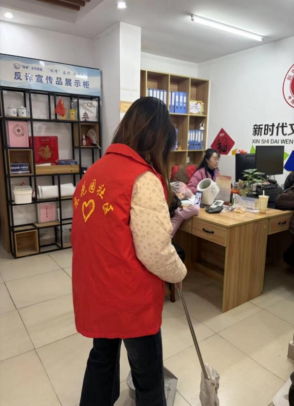 团队紧扣基层各服务点的工作需求,科学统筹、精准施策,确保志愿服务各项工作落到实处、取得实效。盐城市射阳县永胜社区,方馨悦于1月27日到岗开展志愿服务,完成工作对接后,迅速进入工作状态,负责来访群众的接待与信息咨询工作,同时承担社区台账整理、信息录入等核心工作,细致完成居民信息登记、核对、系统录入及复核归档全流程操作,为社区信息管理工作提供了有力支持。2月4日,王语在社区开展全天环境清洁志愿服务,对社区公共区域、绿化带进行全面清扫,仔细擦拭公共设施,彻底铲除墙面及楼道小广告,重点整治卫生死角,全程做好垃圾清运与环境检查,让社区环境得到显著改善;同日,胡娜和宋伶俐在社区活动室助力传统文化剪纸活动,从前期的场地布置、物资分发,到活动中的居民签到引导、现场秩序维护,再到一对一帮扶老人和儿童完成剪纸创作,以及后期的作品整理、展示和场地清理,每一个环节都认真负责,让居民在动手实践中感受传统文化的魅力。