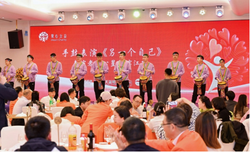 晚宴节目精彩纷呈:"心星鼓"乐队演奏《公路》《一万次悲伤》,用鼓点传递特殊儿童的乐观与希望;滨江班非洲鼓表演《另一个自己》,展现受助学生打破障碍的生命强音;九A班歌舞《相亲相爱,挚友同行》、九B班合唱《明天会更好》,唱响公益路上的温暖与传承。